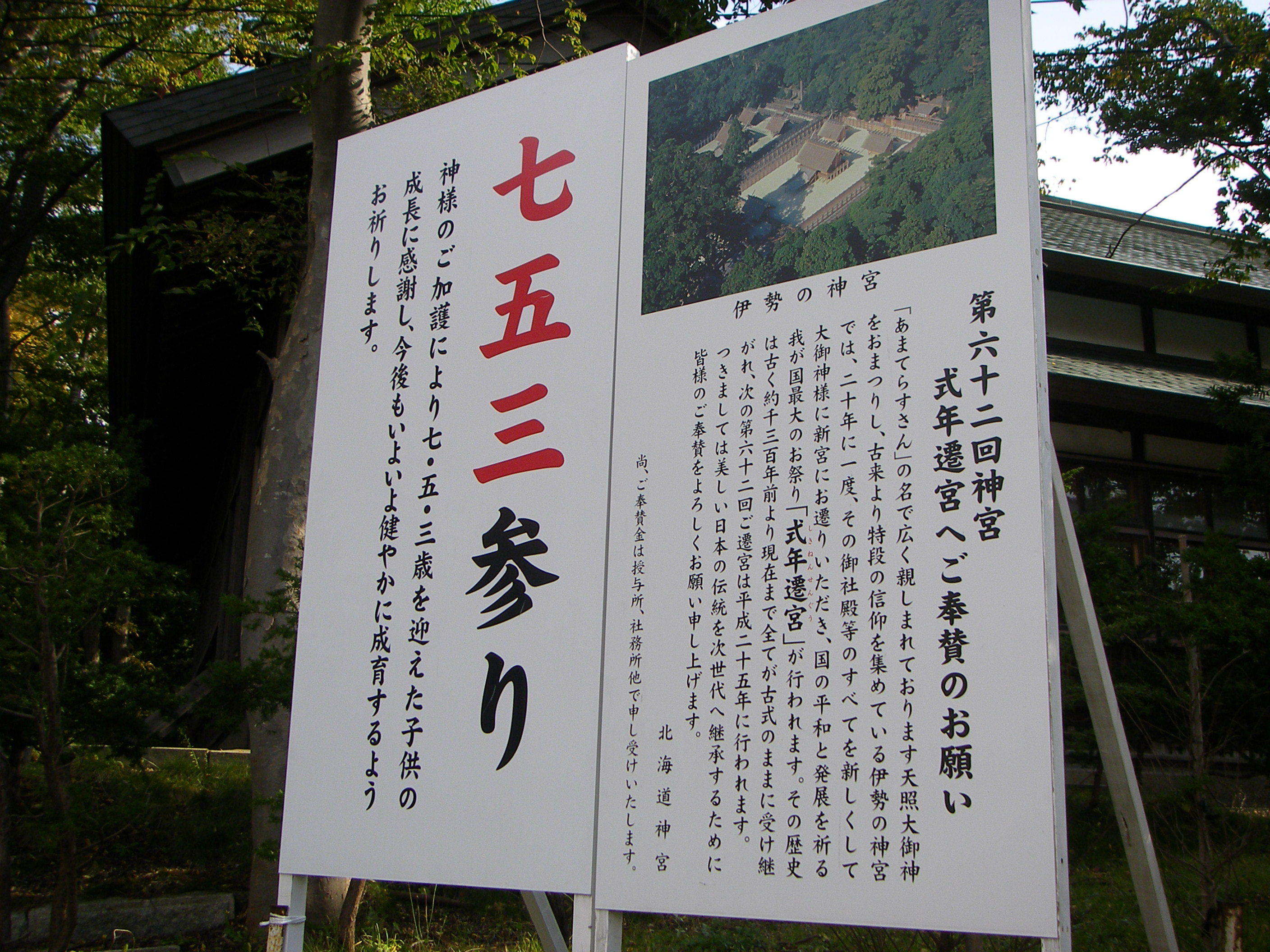 通常の北海道神宮では考えられない人・人・人・・・・・・。これは何?と通路の看板に目をやると【七五三】の文字。私も子供が小さい時にお参りに行き、その時の記憶が蘇りました。皆さん【七五三】て男の子と女の子ではお参りする年齢が違うのをご存じですか?男の子は3歳と5歳、女の子は3歳と7歳の年に、成長を祝って神社などに詣でる行事であり、本来は数え年で行うといわれていますが、現在は満年齢で行われる場合が多いようです。地方によっては男の子の3歳を行わない所もあるとかないとか・・・・・・・。皆さん子供の成長を写真やビデオに収めていました。