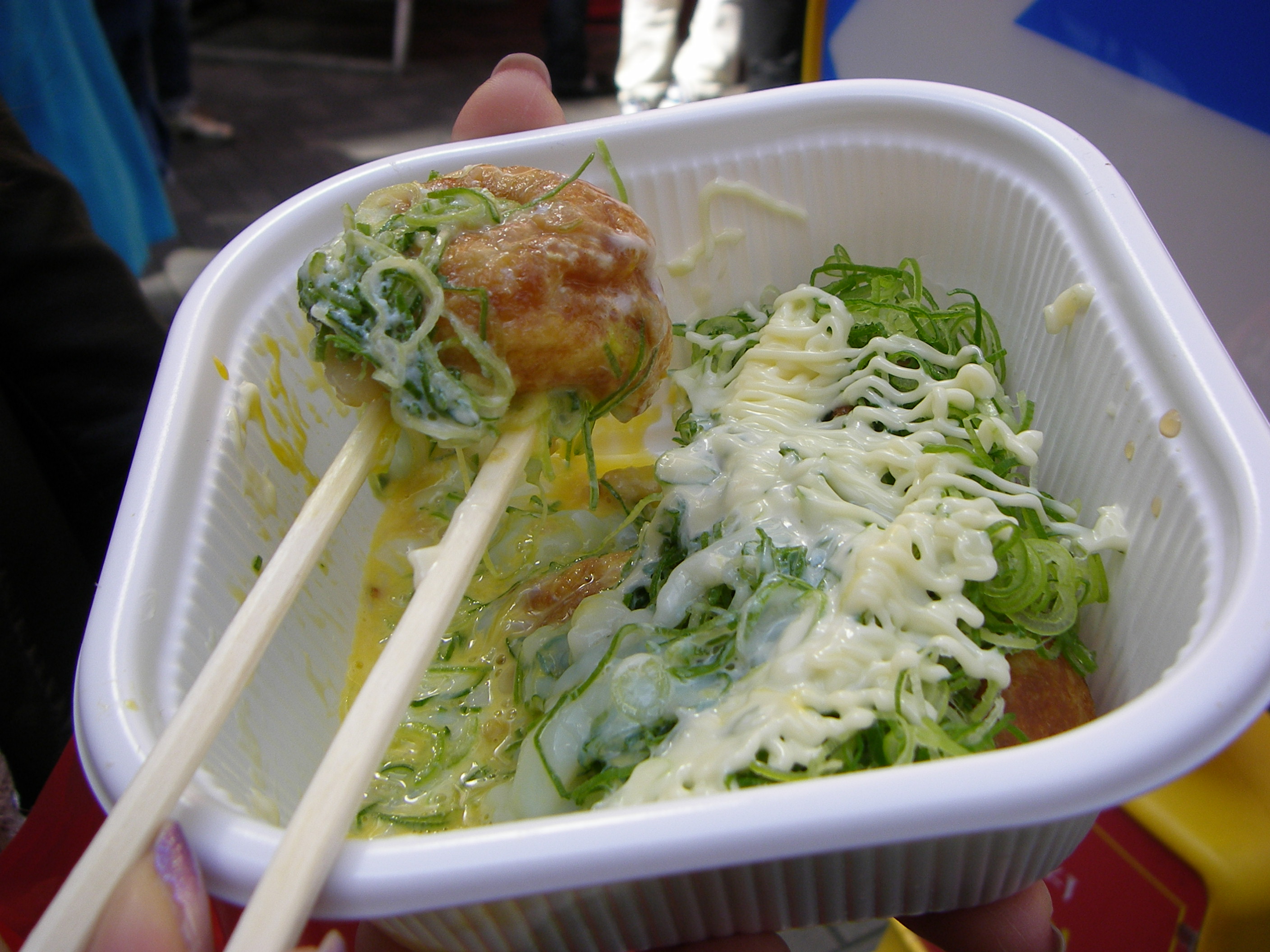 食事を楽しみ、日中は多くの若者が街に繰り出したこ焼きを食べながら楽しそうに会話をしているという、