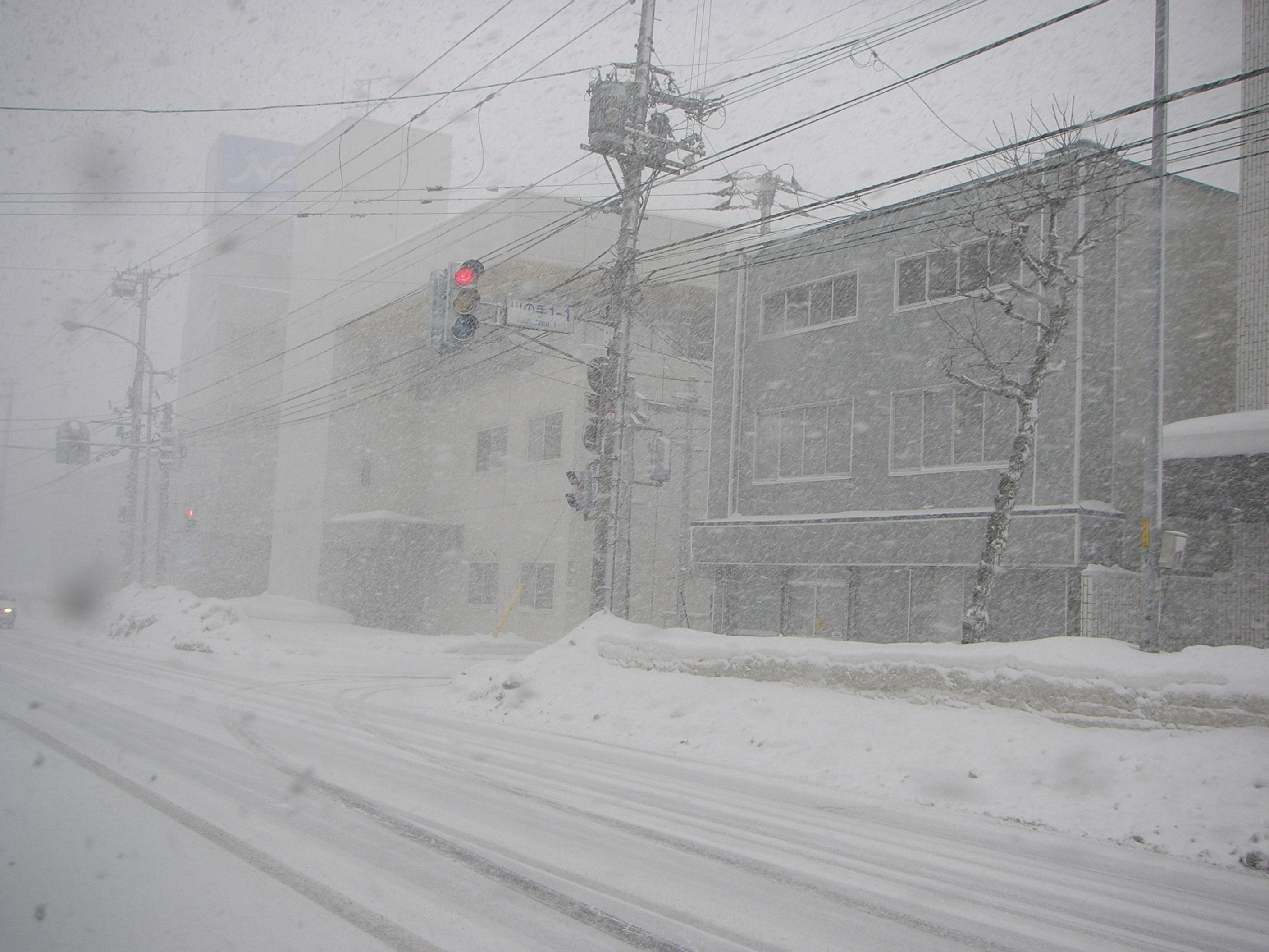 仕事を終え、食事でもと思った瞬間、外は吹雪。1年に数回程度しか味わえないほどの吹雪。