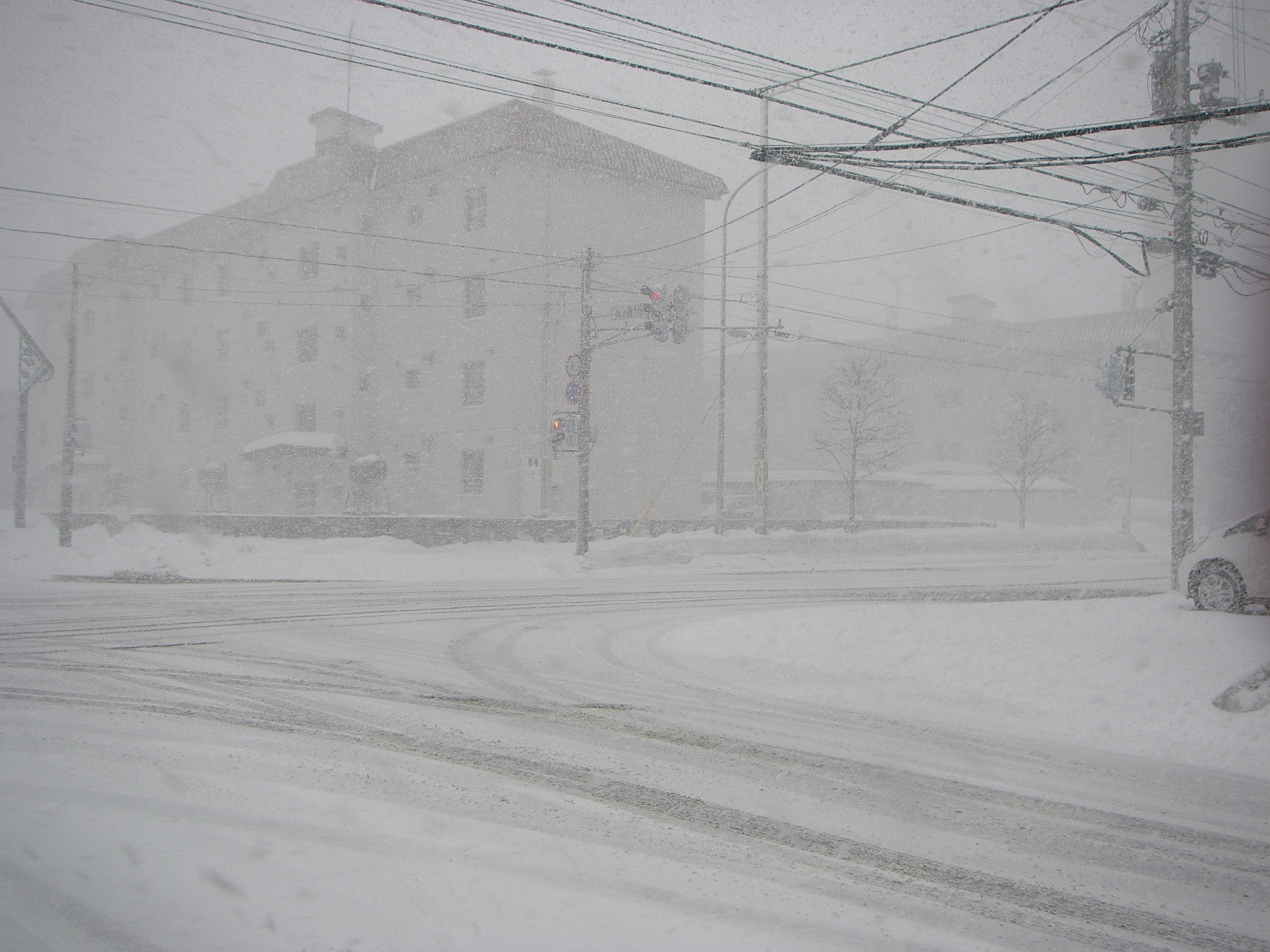 久しぶりに前が見えない位の吹雪で、車を運転していても視界は5m程度。