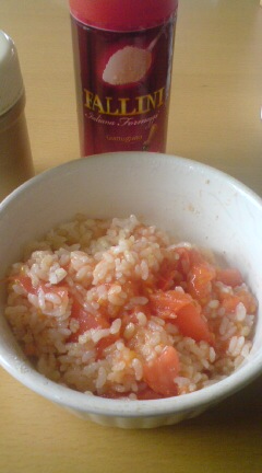 ・温め終わったものをトマトを細かく潰すようにご飯と混ぜると出来上がりです。