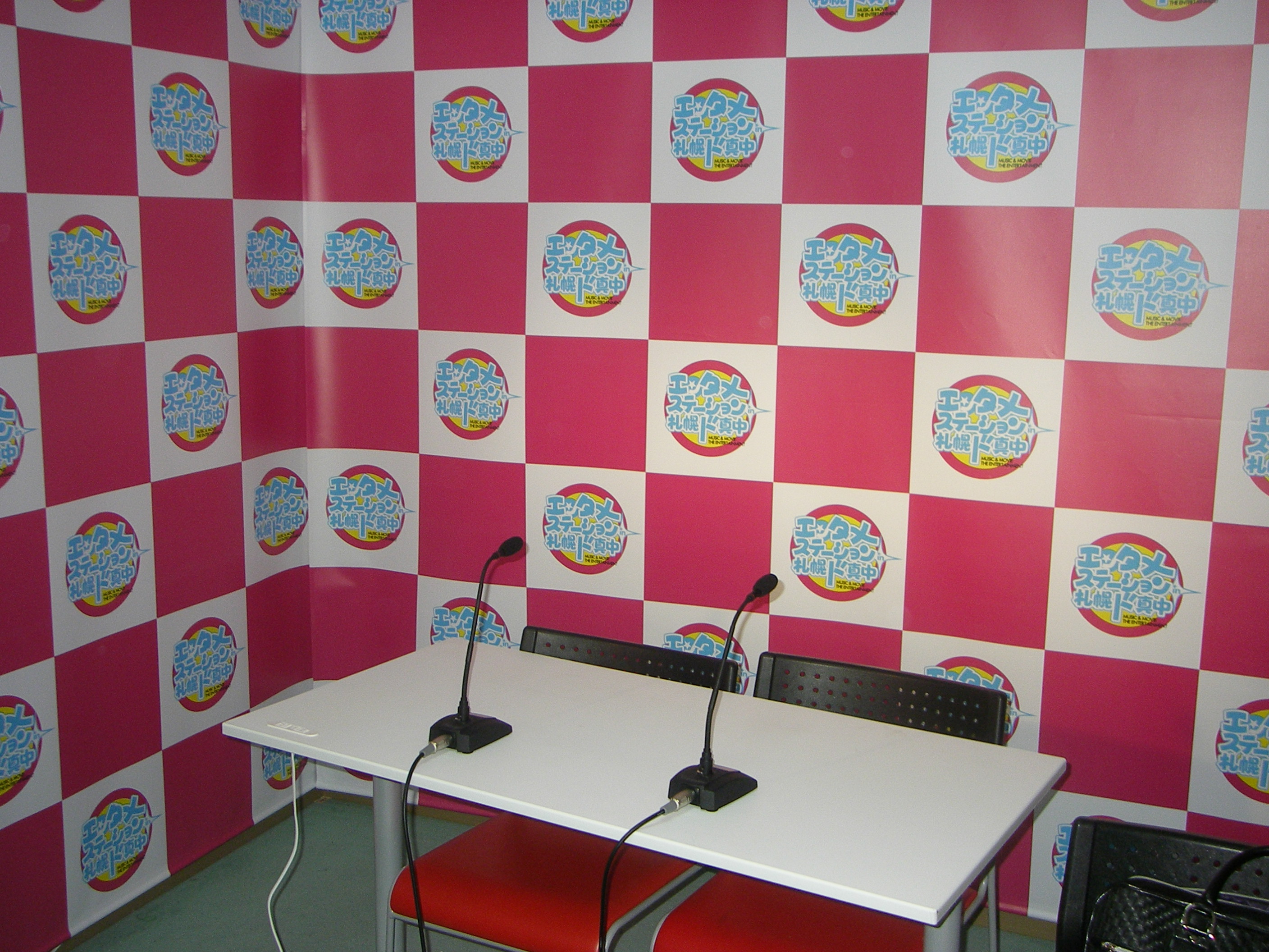 ラピスコーポレーション 竹村です。 先日お取引先の工事を受注しました。 マンションの一室をテレビ撮影用スタジオへ改装するという工事です。 よくインタビューでみます【バックボード】など製作し完成しました。 費用を抑えることを目的とし、バックボードを幕で代用しました。