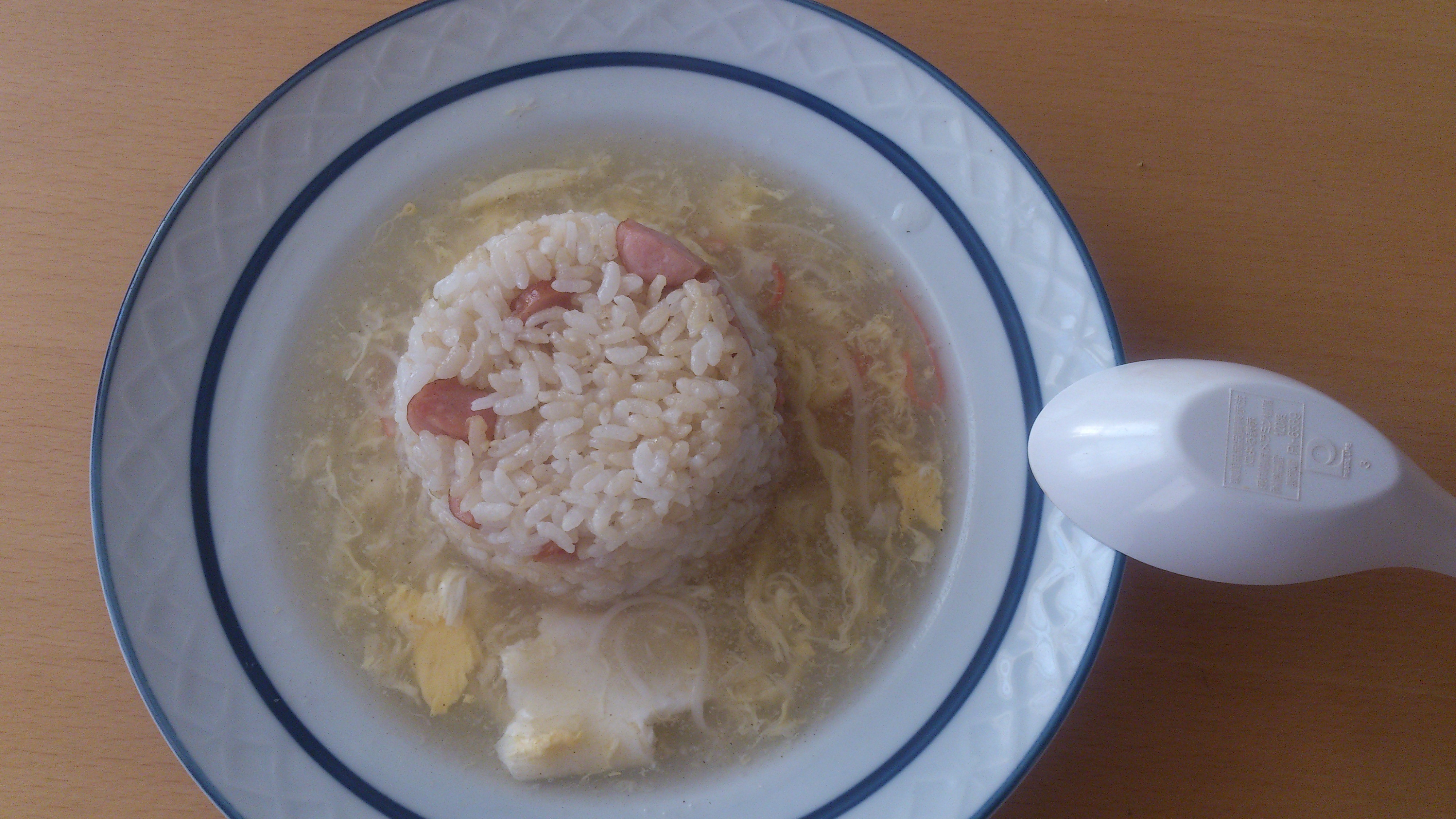 米2合 ソーセージ3本 鶏ガラスープ(顆粒) カニカマ2本 卵2個