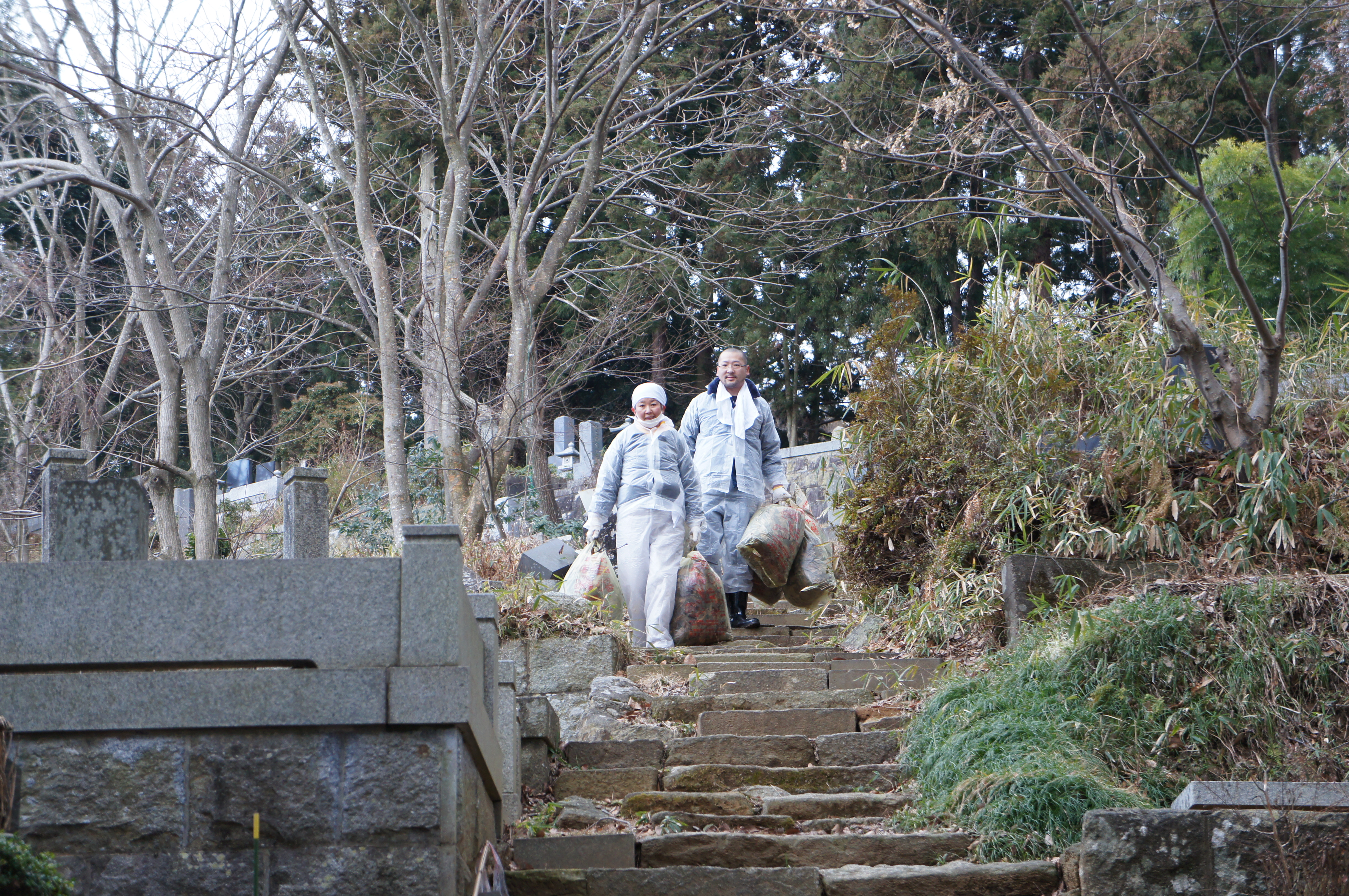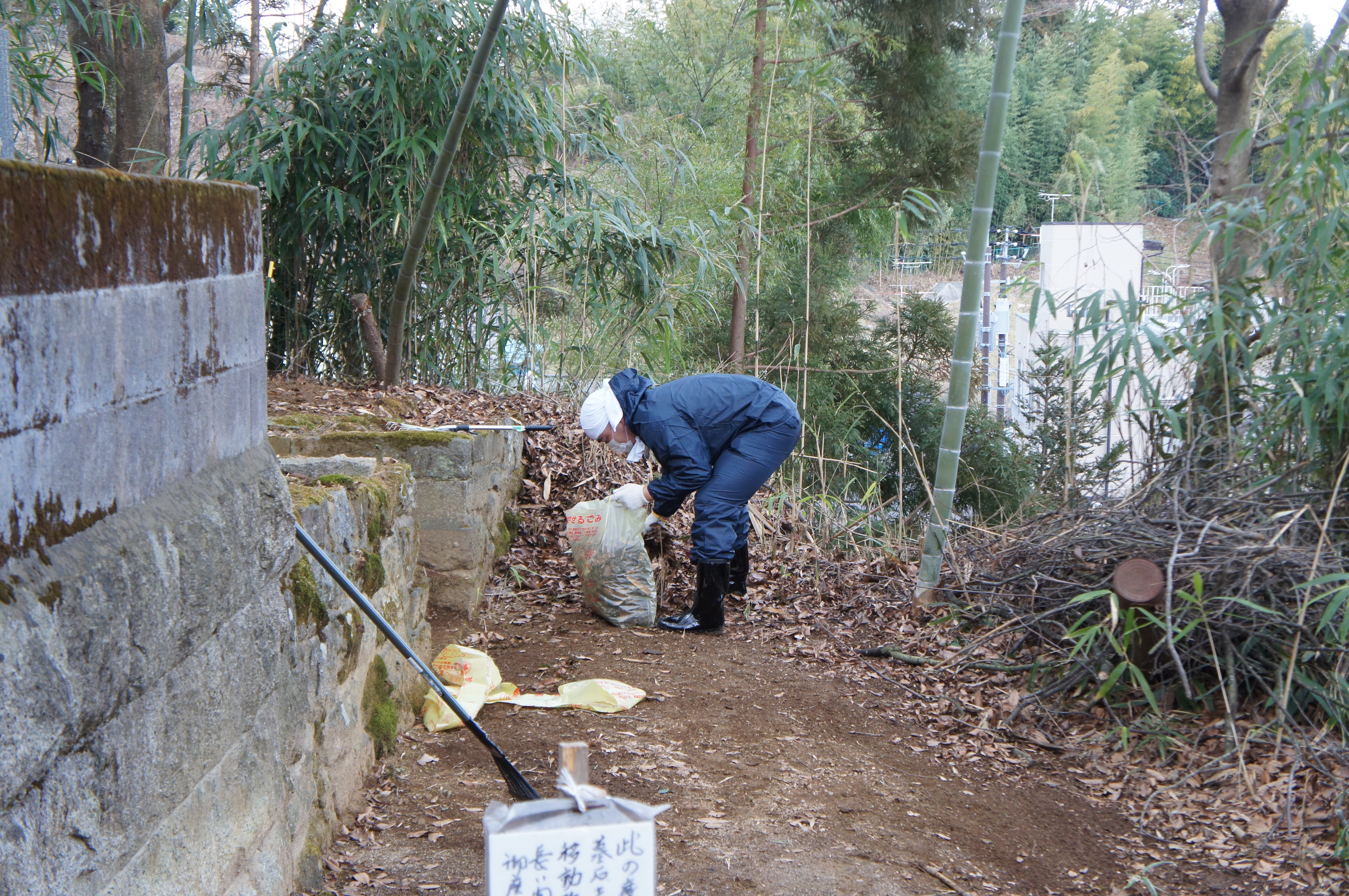 我々が実施したのはお墓廻りの落ち葉拾い。