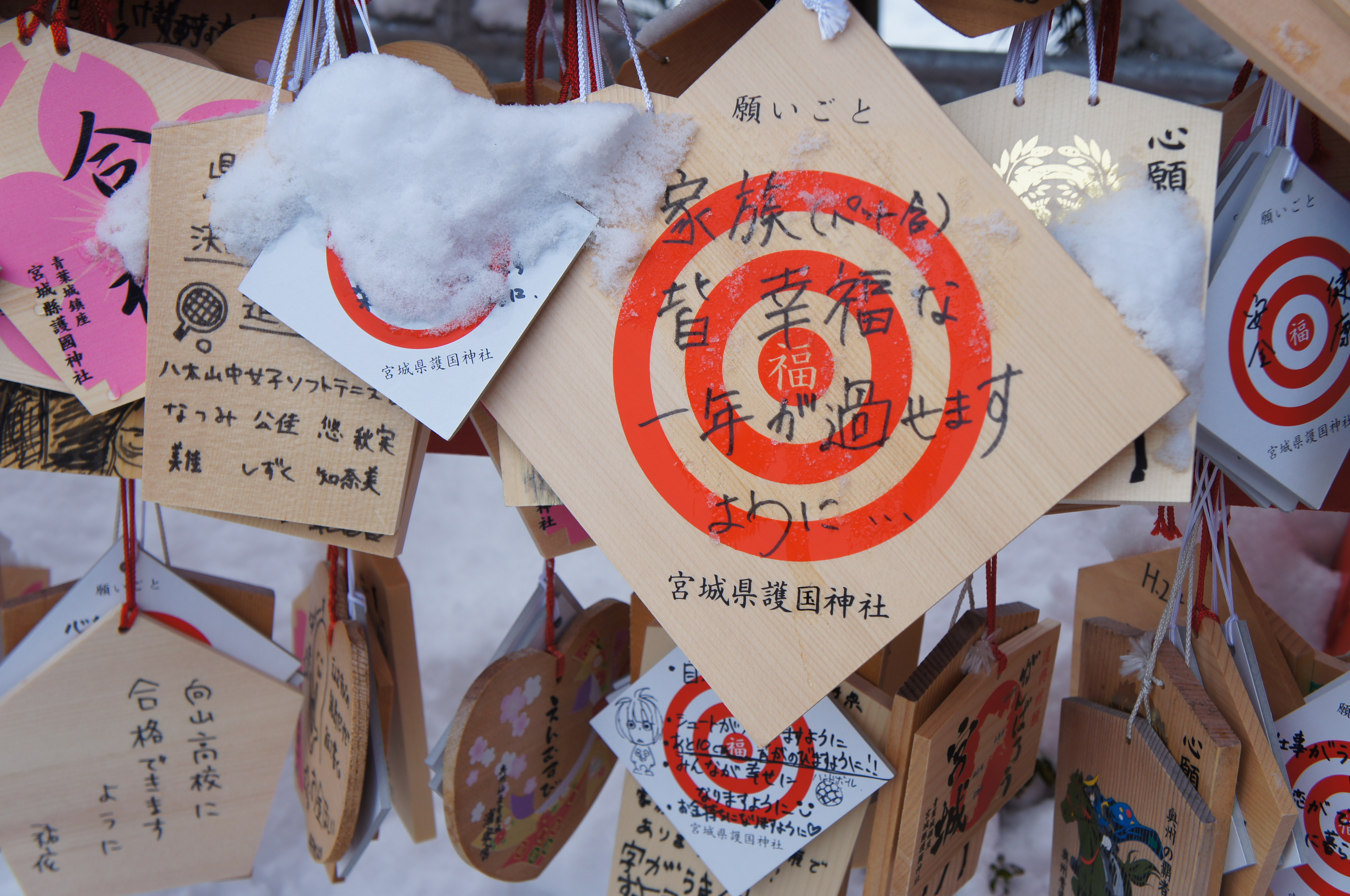 『家族皆幸福な1年が過ごせますように』という絵馬を発見。