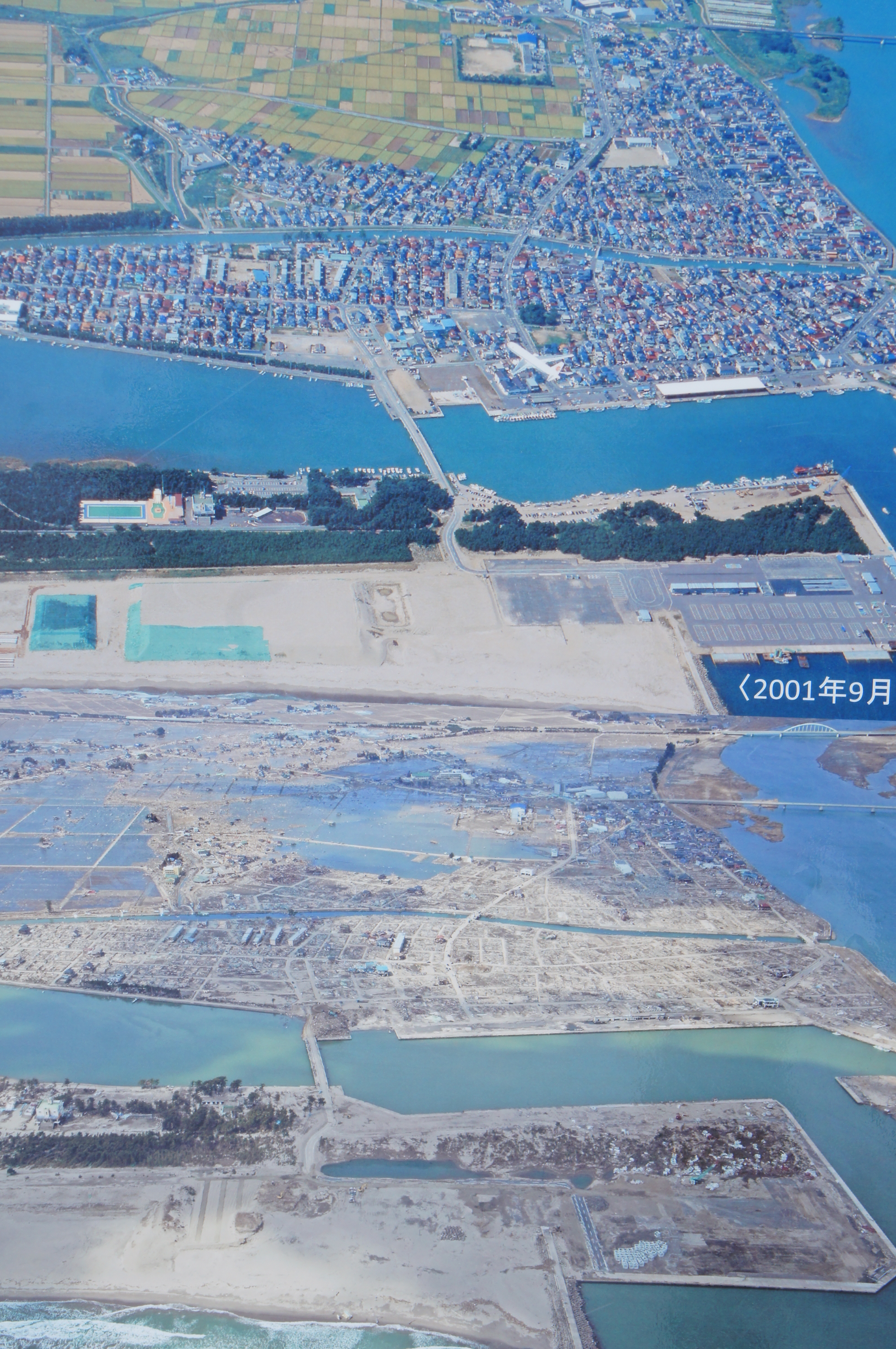 2001年9月の震災前の写真とその後の震災後の写真
