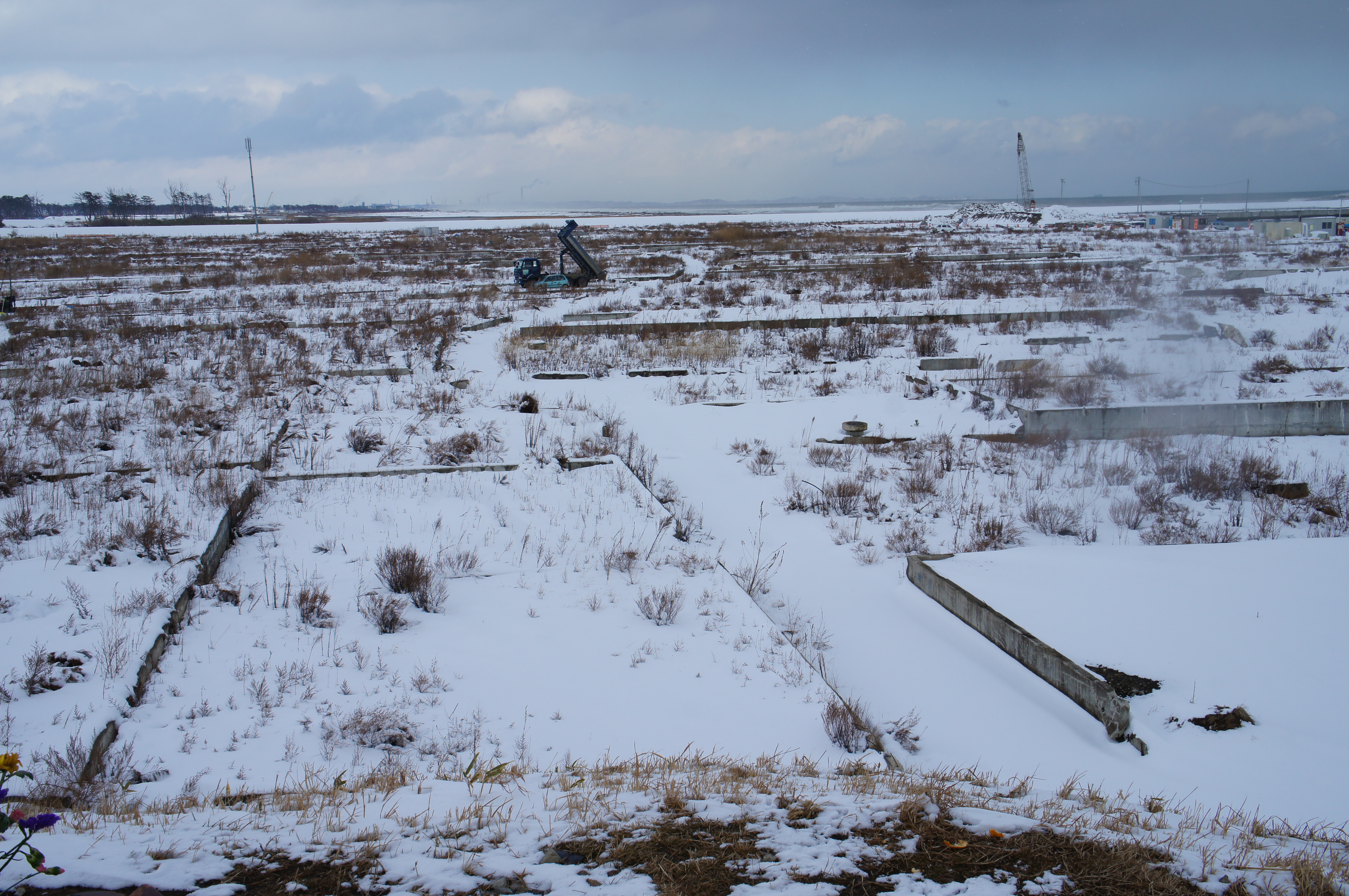しかしよくよくみると建物があった形跡があり、震災後2年もたっているのに、