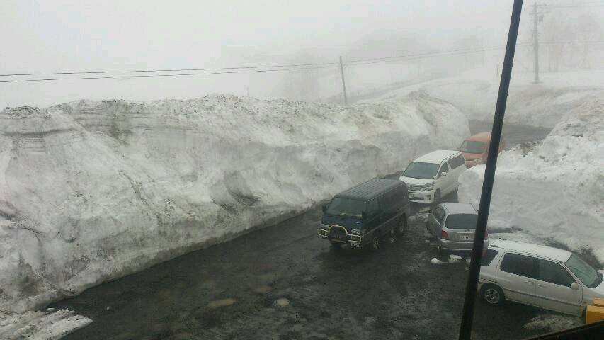 ラピスコーポレーション 竹村です。 今年の雪がこんなところにも影響が・・・・。 昨日仕事でニセコへ行って少し山方面に向かってみるとこの状況。 今日は5月中旬、この状況って3月くらいじゃない?と感じる位でした。 車も夏タイヤですので慎重に移動しましたが、かろうじて車道は舗装が出ている状況。 驚きです!
