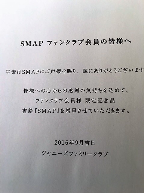 妻と娘がSMAPのファンで、随分前からファンクラブに加入し