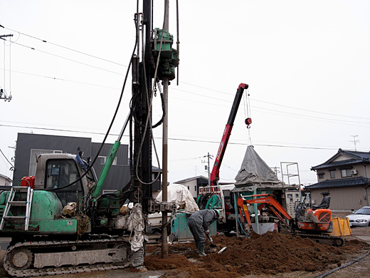 その地盤まで杭を打ち込み、杭打ち機の打ち込む際の