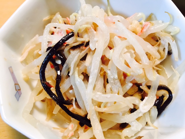 簡単ローストビーフともやしの塩こぶサラダを作りました。
