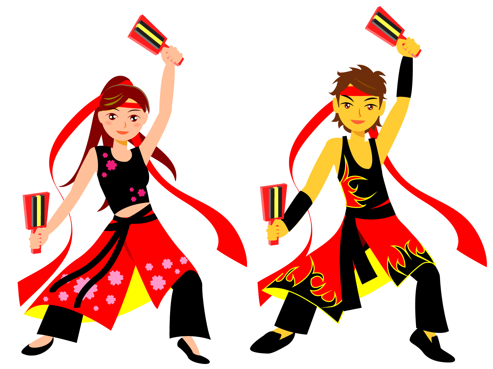 ①手に鳴子をもって踊る