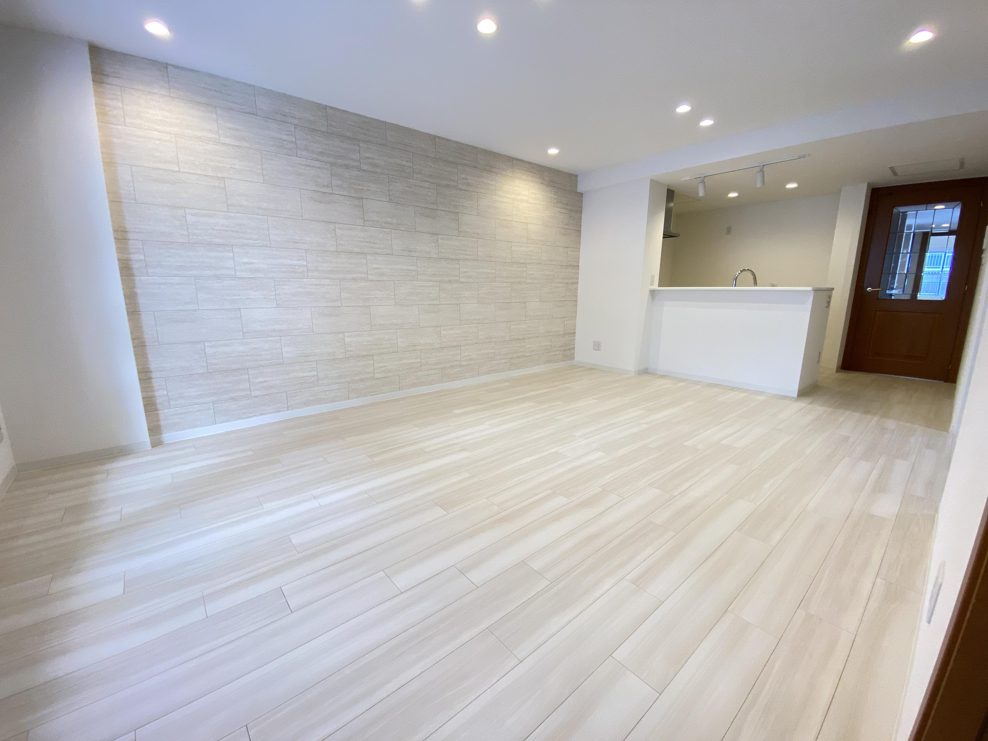 天井にはダウンライト。広い壁にはクロスの貼り分けを採用