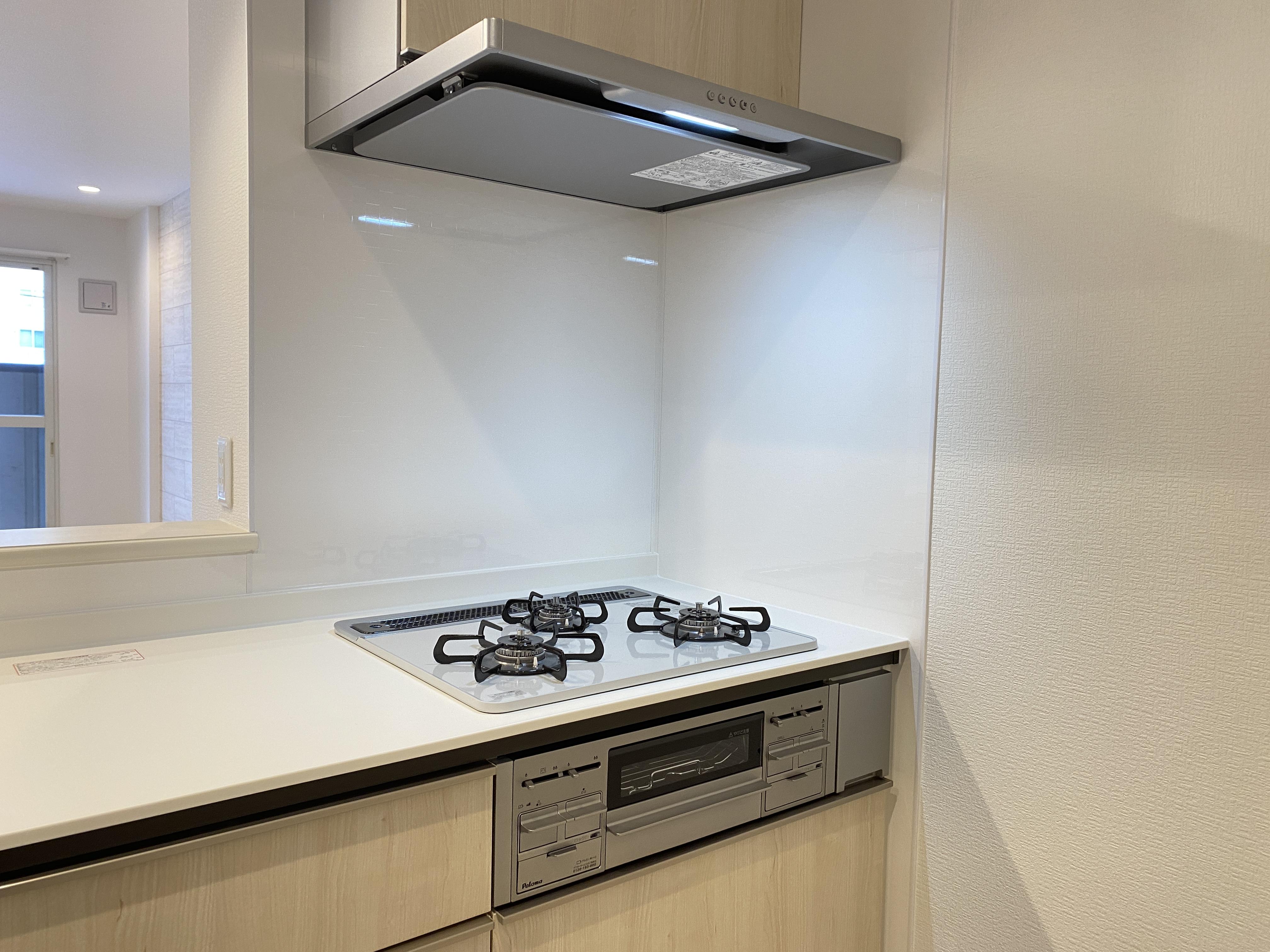 レンジフードは薄型のものを採用。調理の最中も邪魔にはなりません