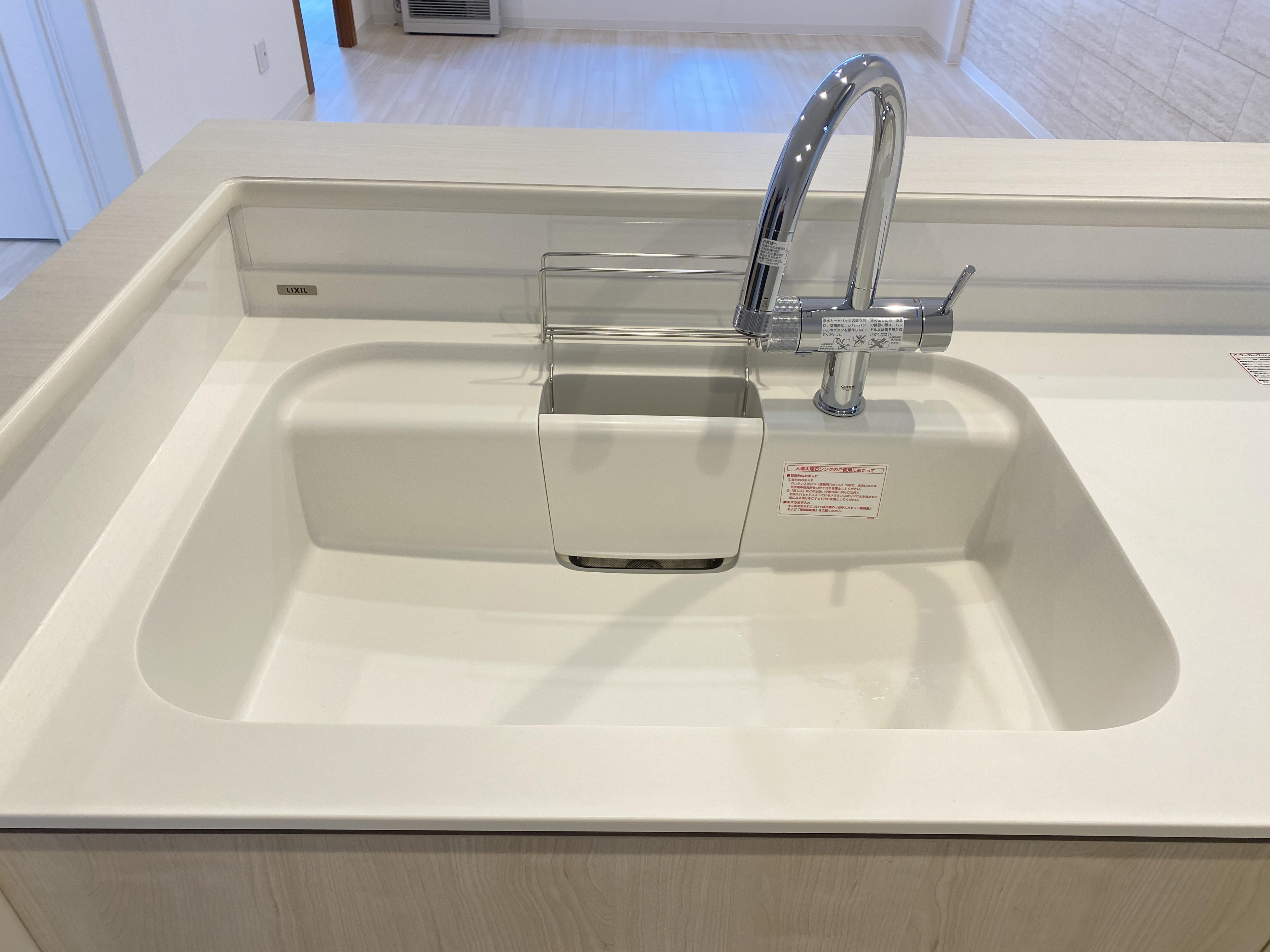 従来のリノベでは採用していない、天板の薄型のものを採用 その分蛇口を重厚感のあるものに!